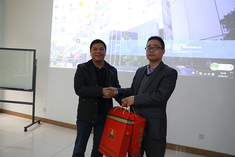 座談會(huì )上,黃樂(lè )瑜書(shū)記介紹了松山湖2017年黨組織情況,分析了園區過(guò)去一年的喜人業(yè)績(jì),以及2018年工作規劃,同時(shí)對正業(yè)科技作為園區內具有知名度的上市公司,對其黨支部的2018年黨建工作寄予殷切厚望,為黨員職工送上慰問(wèn)禮品,在寒冷的冬季為企業(yè)基層黨員送來(lái)熱情的節日問(wèn)候。